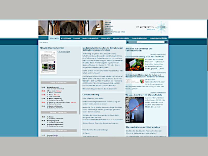 Für die Kirchengemeinde St. Suitbertus in Remscheid, unserem langjährigen Kunden, führten wir das Upgrade des TYPO3 CMS 6.2 auf die aktuelle Version 10.4. durch.